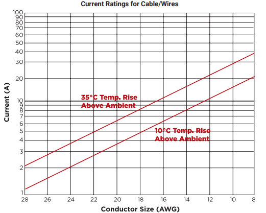 The maximum continuous current rating is limited by the size of the wire, or the total number of conductors within the cable, and the outside conditions within the surrounding environment including ambient temperature and airflow.