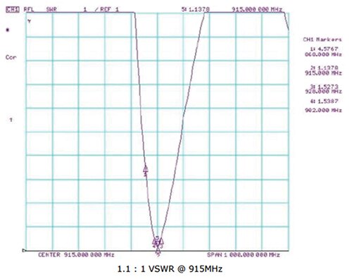 While having a low VSWR is desired, it only helps if it is low at the frequency you are working with. While this antenna can boast a VSWR of 1, it can only do so at 915 MHz. VSWR is frequency dependent so you will always want to know what your center band is when you take this number into account.