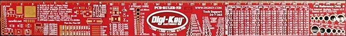 There’s so much information packed onto the DigiKey PCB ruler that you might have a little trouble reading all of the information on it (not to mention your PCBs). Some of the print on the ruler’s sort of tiny. So are most of the SMT components, and the PCB pads and traces you might be comparing with the ruler.