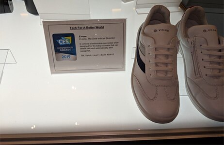 Figure 5: The E-vone shoe is designed for the elderly and sends out a wireless alert when they fall. (Image source: ClariTek/TechWire International)