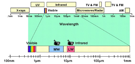 A thermal imaging camera requires no active illumination, and it is capable of longer range detection since no reflected light is needed. Thermal imaging “cameras” are actually sensors. Thermal imaging usually detects radiation in the long-infrared (LWIR) range of the electromagnetic spectrum (roughly 8–15 µm) and outputs a uniform image, called a thermogram.