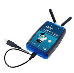 The ADALM-PLUTO comes with two antennas (824 MHz to 894 MHz / 1710 MHz to 2170 MHz), one SMA cable, one USB cable, and the module which is small enough to fit in your pocket. Features found within the module include a 12-bit analog to digital converter (ADC), digital to analog converter (DAC), half or full duplex options, and USB interface and power. The module has a graphical user interface (GUI) that uses open source firmware built from DAS U-Boot, the Linux kernel, and Buildroot. The module supports GNU Radio sink and source blocks, and libiio, which is a C, C++, C#, and Python API. This allows the module to support various operating software packages such as OS X®, Windows®, and Linux®, and learning programs such as MATLAB® and SimuLink®.