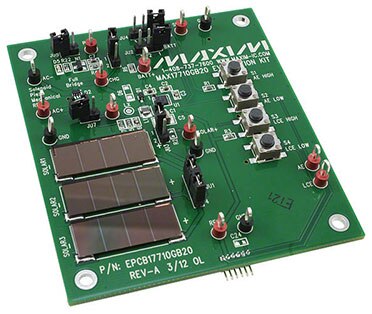 The MAX17710 evaluation board gives developers the ability to charge a protected lithium battery cell from an energy harvesting source such as a solar cell