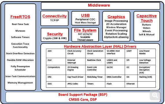 FSP provides production ready peripheral drivers, connectivity protocol stacks, Amazon FreeRTOS and middleware stacks to take advantage of the FSP ecosystem.