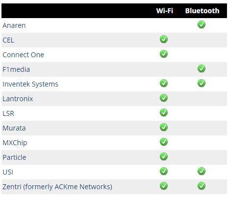 Since WICED is an easy way for designers to get in to developing for IoT, Cypress has licensed this technology to many module and development kit manufacturers. Partners include Inventek Systems, Laird – Embedded Wireless Solutions, Murata, Particle, Zentri, and more.