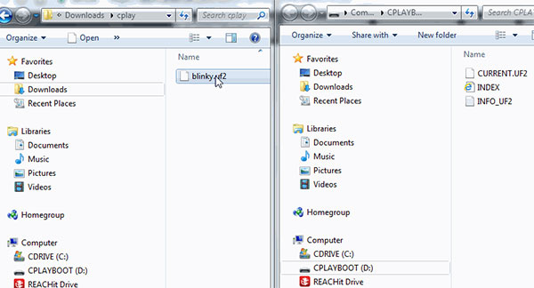 Windows: Open Windows Explorer (Windows key + E key) and locate the "blinky.uf2" file you generated. It's probably in your Downloads folder!