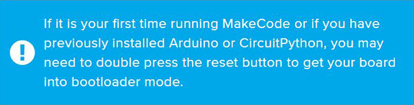Getting your code into your device is very easy with MakeCode. You do not need to install any software on your machine and the process takes two steps: