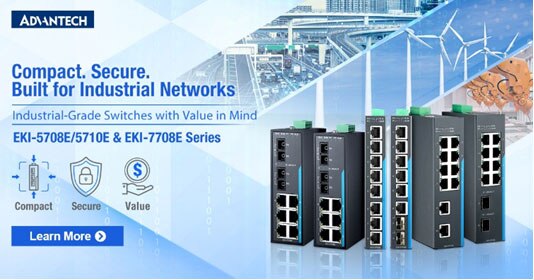 The Advantech EKI-5708E, EKI-5710E, and EKI-7708E managed switch series are engineered to deliver reliability, flexibility, and simplified deployment for industrial networks. With slim form factors, multiple port options, and powerful built-in functions, these switches ensure stable connectivity across diverse applications. Featuring IXM technology, users benefit from rapid configuration and deployment that saves engineering time and cost, while X-Ring Pro delivers ultra-fast network recovery of less than 20 ms for maximum uptime. Designed for rugged environments, the EKI-5700 and EKI-7700 series are ideal for transportation, renewable energy, and heavy industry installations.