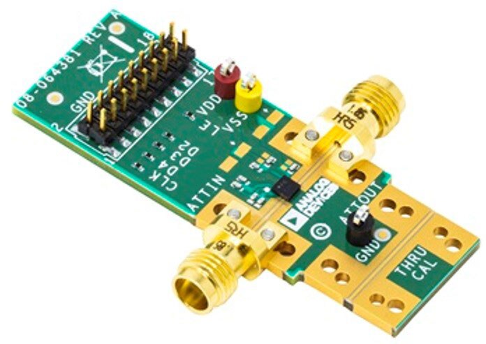 ADI's ADRF5740 is a silicon, 4-bit digital attenuator with 22 dB attenuation control range in 2 dB steps. It operates from 10 MHz to 60 GHz with less than 3.3 dB of insertion loss and with ±(0.2 + 7.0% of attenuation state) of attenuation accuracy at 55 GHz. The ATTIN port of the ADRF5740 has an RF input power handling capability of 24 dBm average and 24 dBm peak for all states.