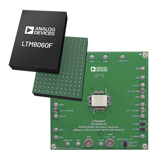 Quad 40VIN, 3A Silent Switcher µModule Regulator with Package-Level EMI Shield