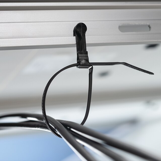 Fits 9x12 or 9x14 module mounting hole for string-level wire management. Convenient LOC quickly secures wires.