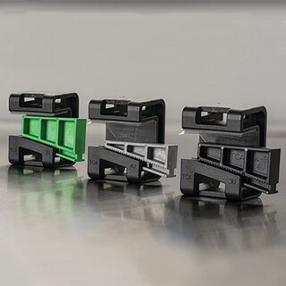Fits ¼” hole module mounting hole for string-level wire management. Convenient LOC quickly secures wires.
