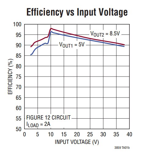 - Low buck dropout operation: 99% duty cycle