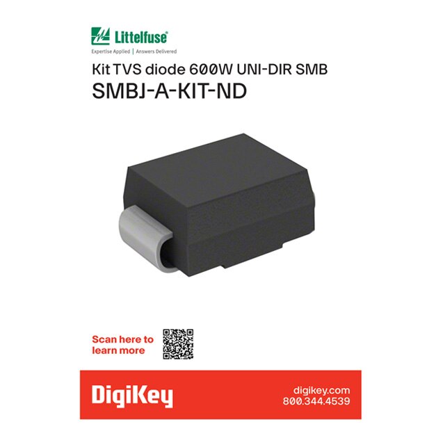 DigiKey has created kits to cover a broad range of TVS diodes offered by Littelfuse. Ranging from industry standard package sizes of SMA to SMC with wattage ratings starting at 400 W and going as high as 3000 W in compact surface mount packages, these TVS diodes are designed to protect sensitive electronic equipment from voltage transients in such applications as telecommunications, computer, industrial and consumer electronics.