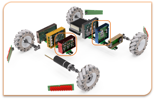 Our autonomous robot solution is equipped with LED lights to show its presence to people and other robots. Additional LED lights are used for signaling. Onsemi is an established supplier of headlight, tail light, daytime running light and signal light solutions to the automotive and industrial vehicle market. We selected two products from this wide portfolio to use in our autonomous robot.