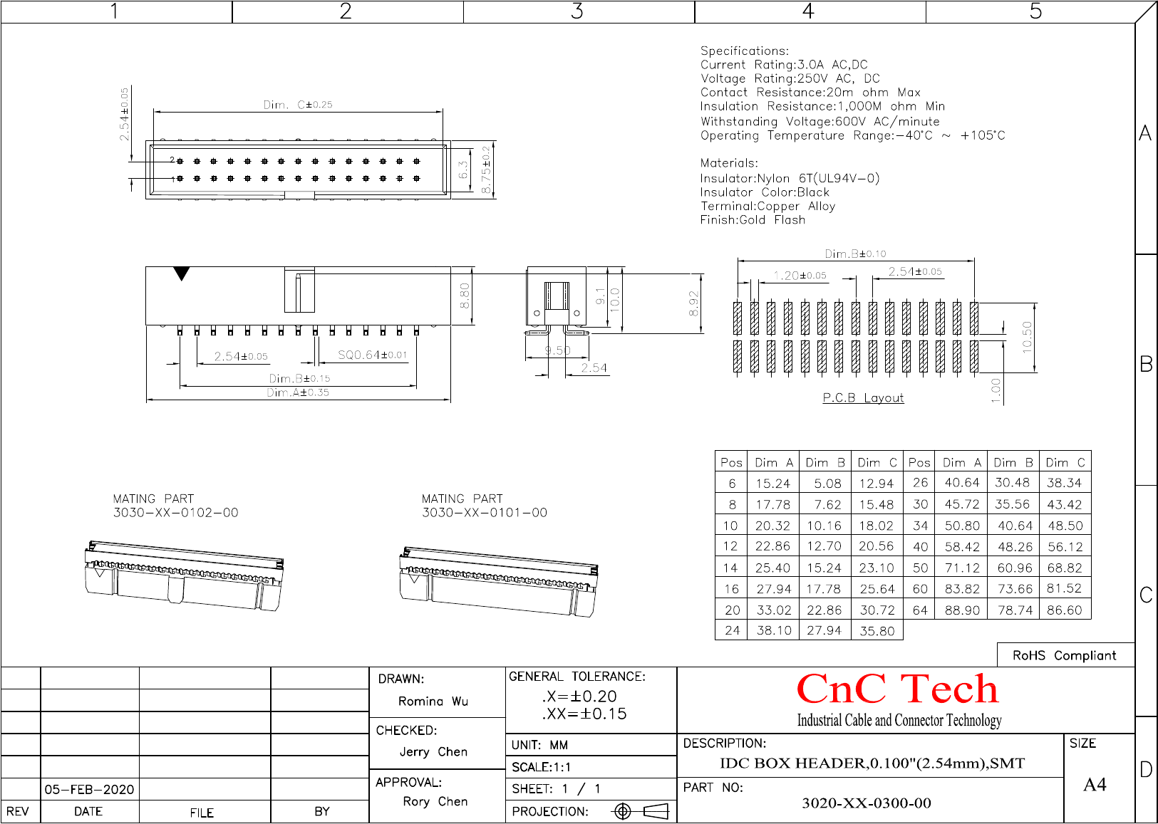 SCALE:4:1 IDC BOX HEADEKO.100"(2.54mm),SMT
