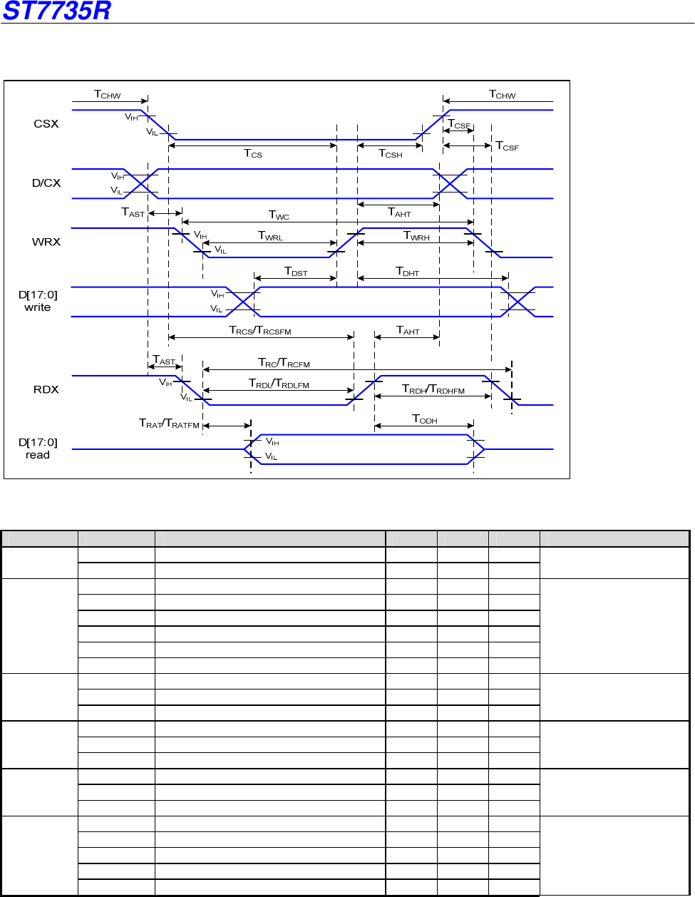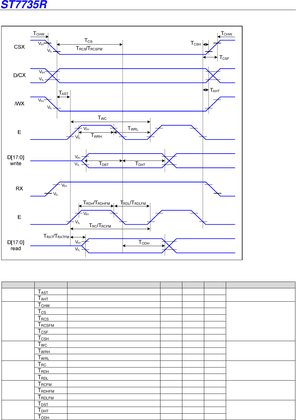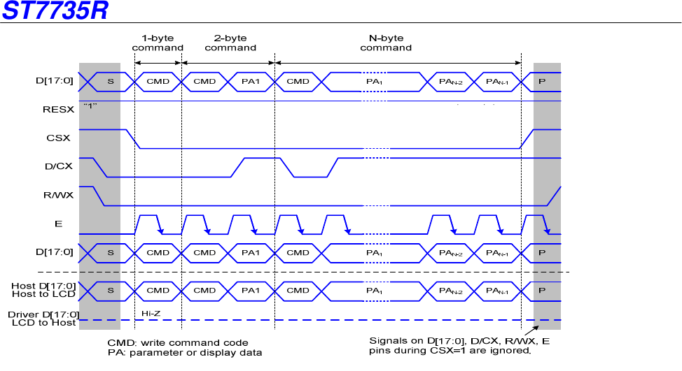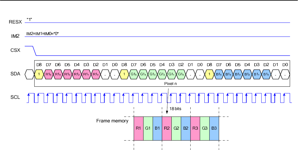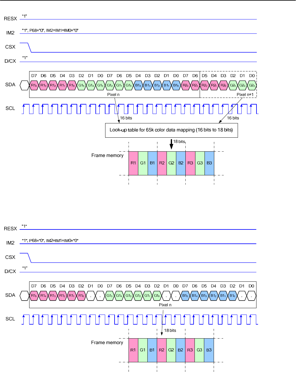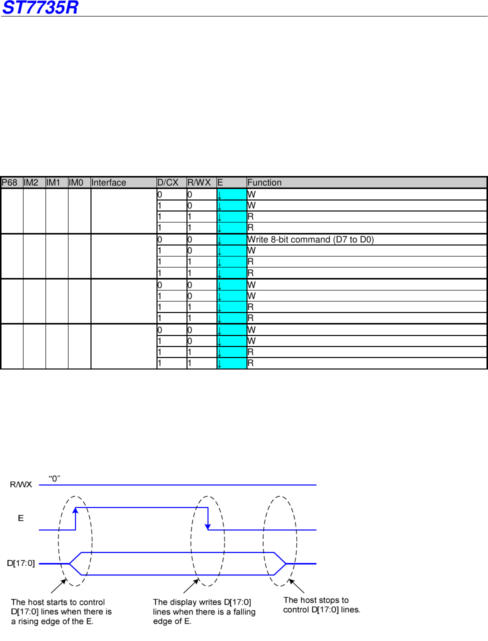 13.3.8 6800-Series MCU Interface for 18-bit data bus (P68=1, IM2, IM1, IM0=”111”)