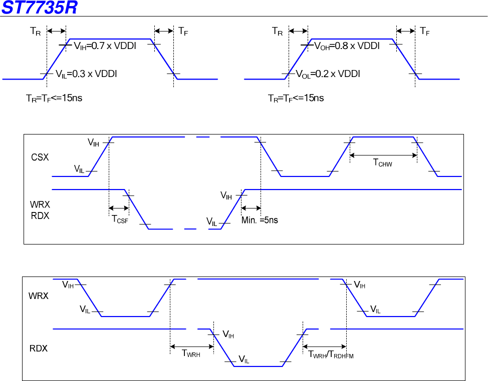 ST7735R Parallel Interface: 8080,6800(8-bit/9-bit/16-bit/18-bit)