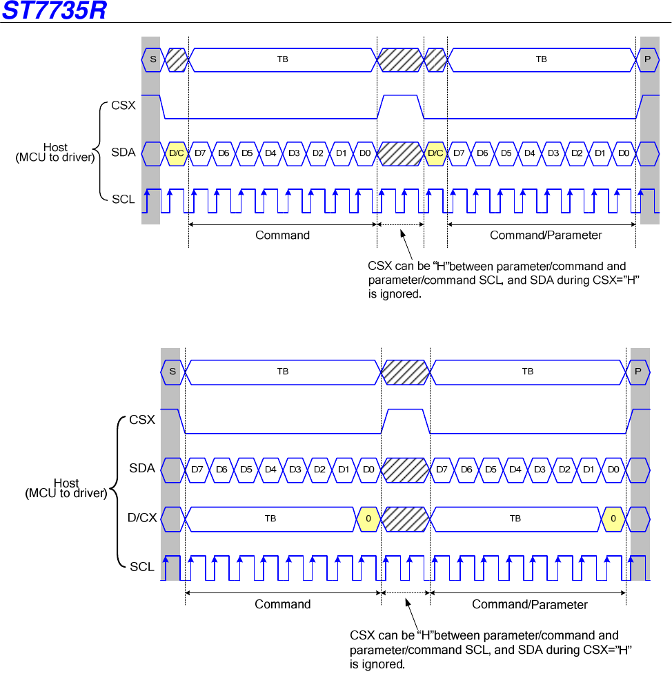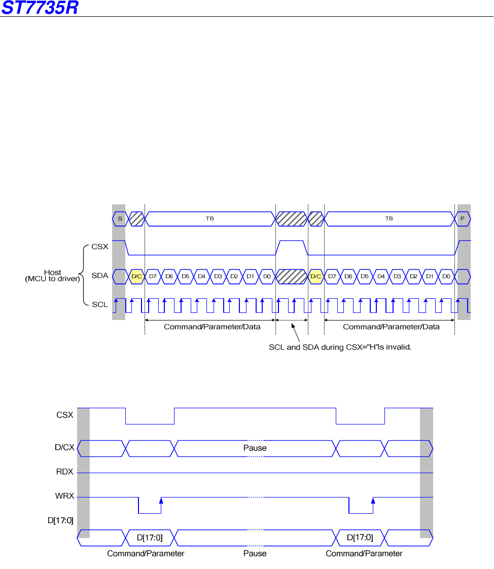 13.3.7 6800-Series MCU Interface for 9-bit data bus (P68=1, IM2, IM1, IM0=”110”)
