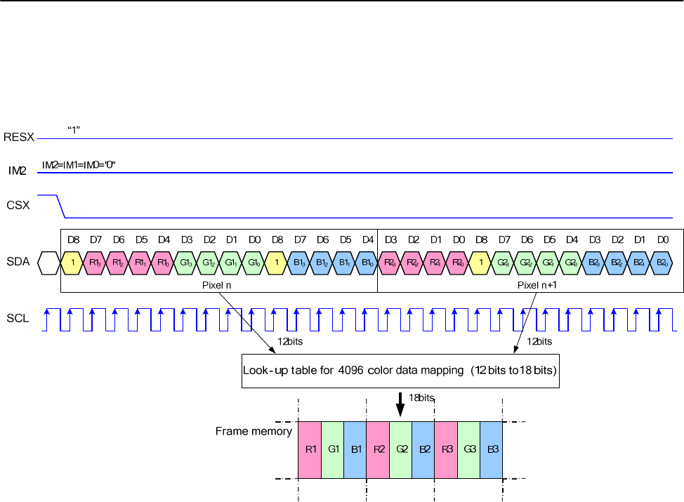 12-bit/pixel: RGB=(444) using the 384k-bit frame memory