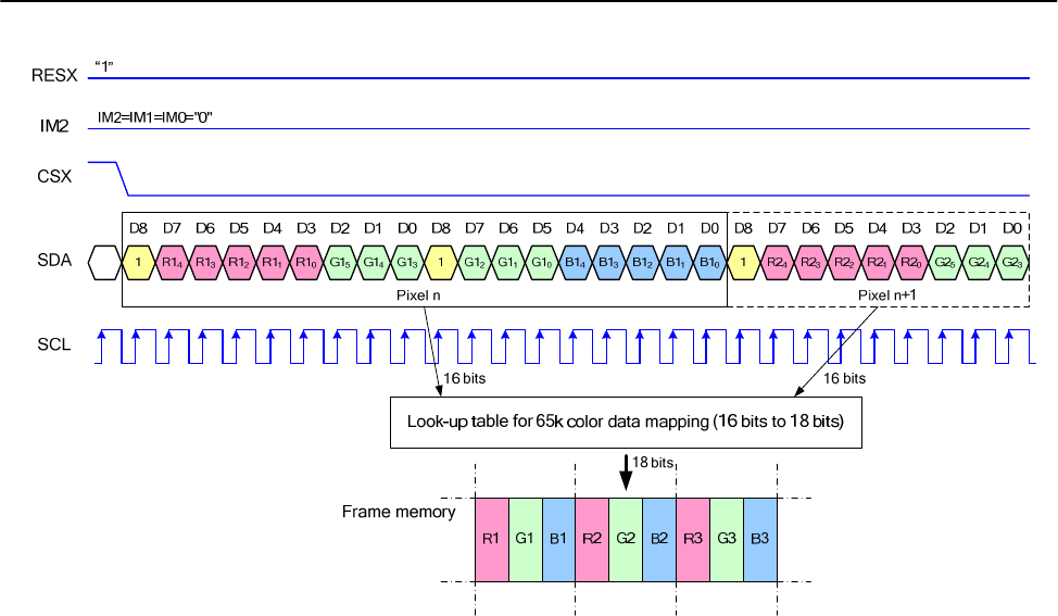 16-bit/pixel: RGB=(565) using the 384k-bit frame memory