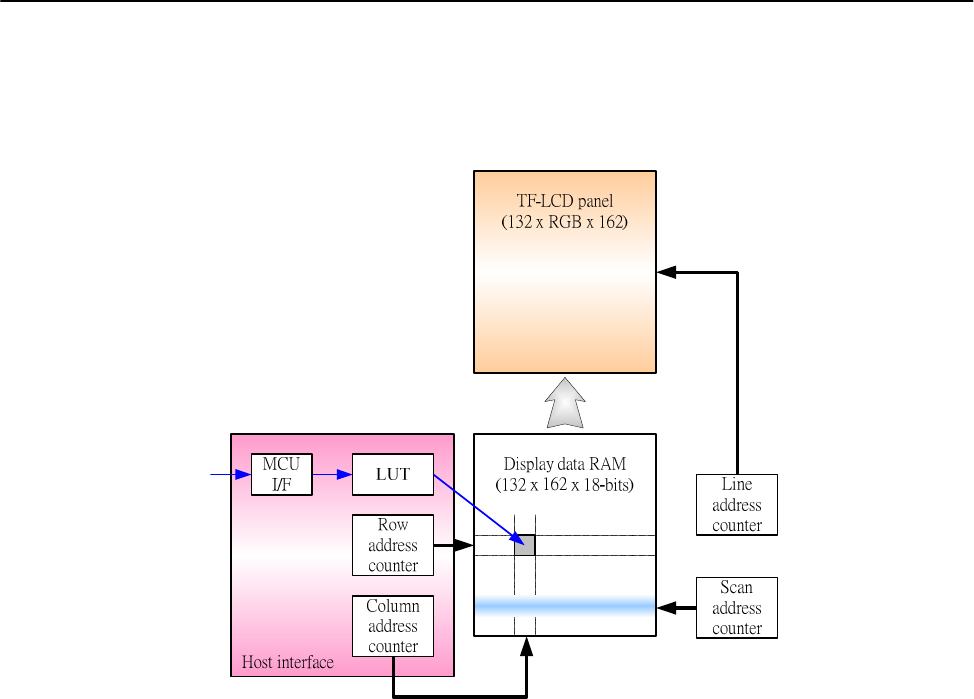 RAM of 132 x 162 x 18 bits. It can perform display data RAM read/write operation with no external operation clock to