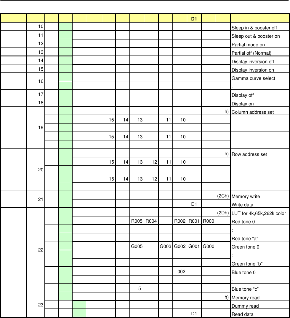 Full Color: 262K, RGB=(666) max., Idle Mode OFF