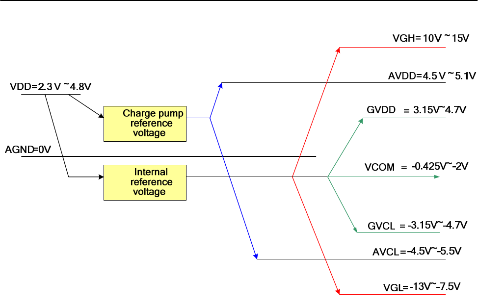 VCOM level (VCOM to AGND): -0.4V to -2.0V
