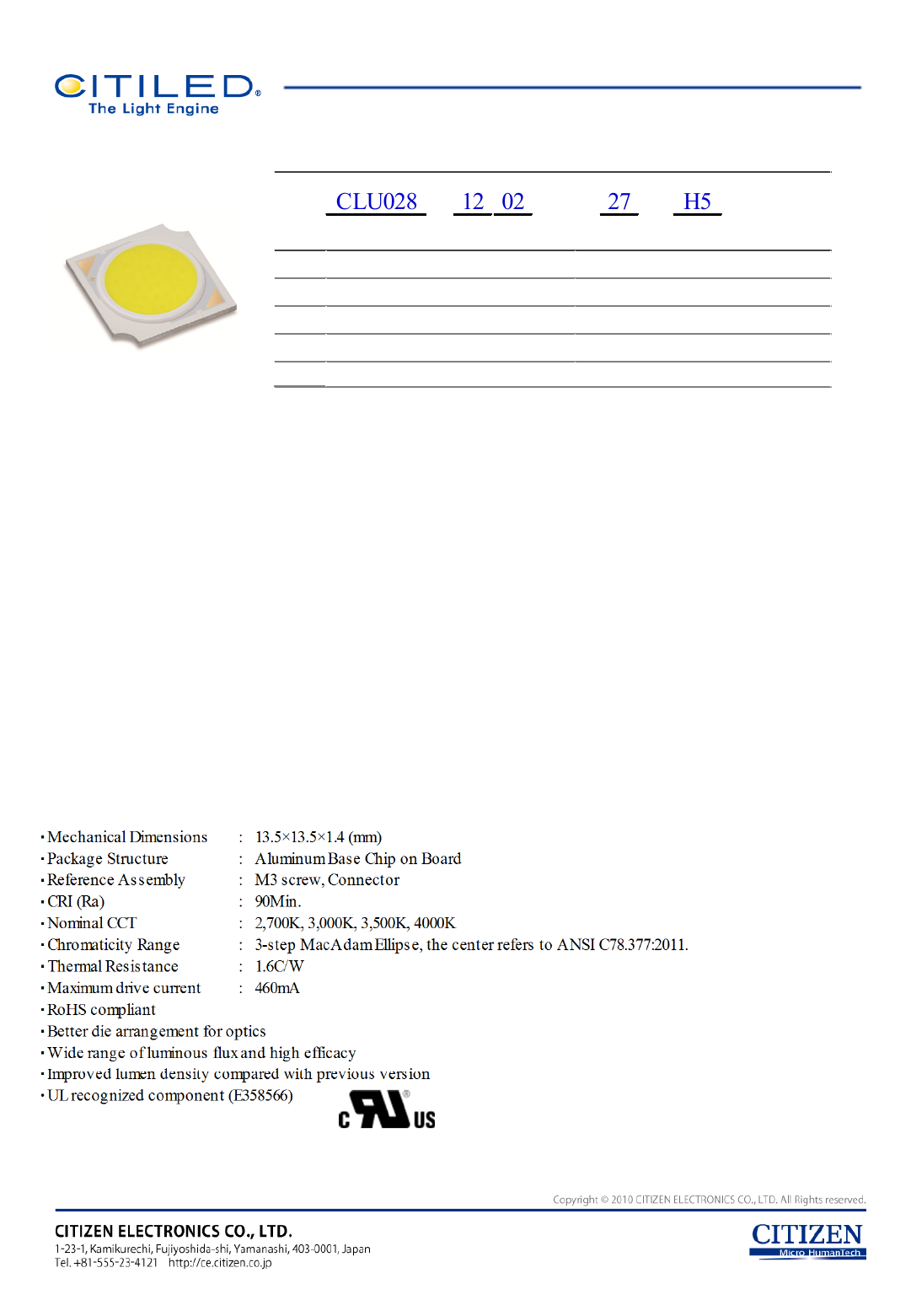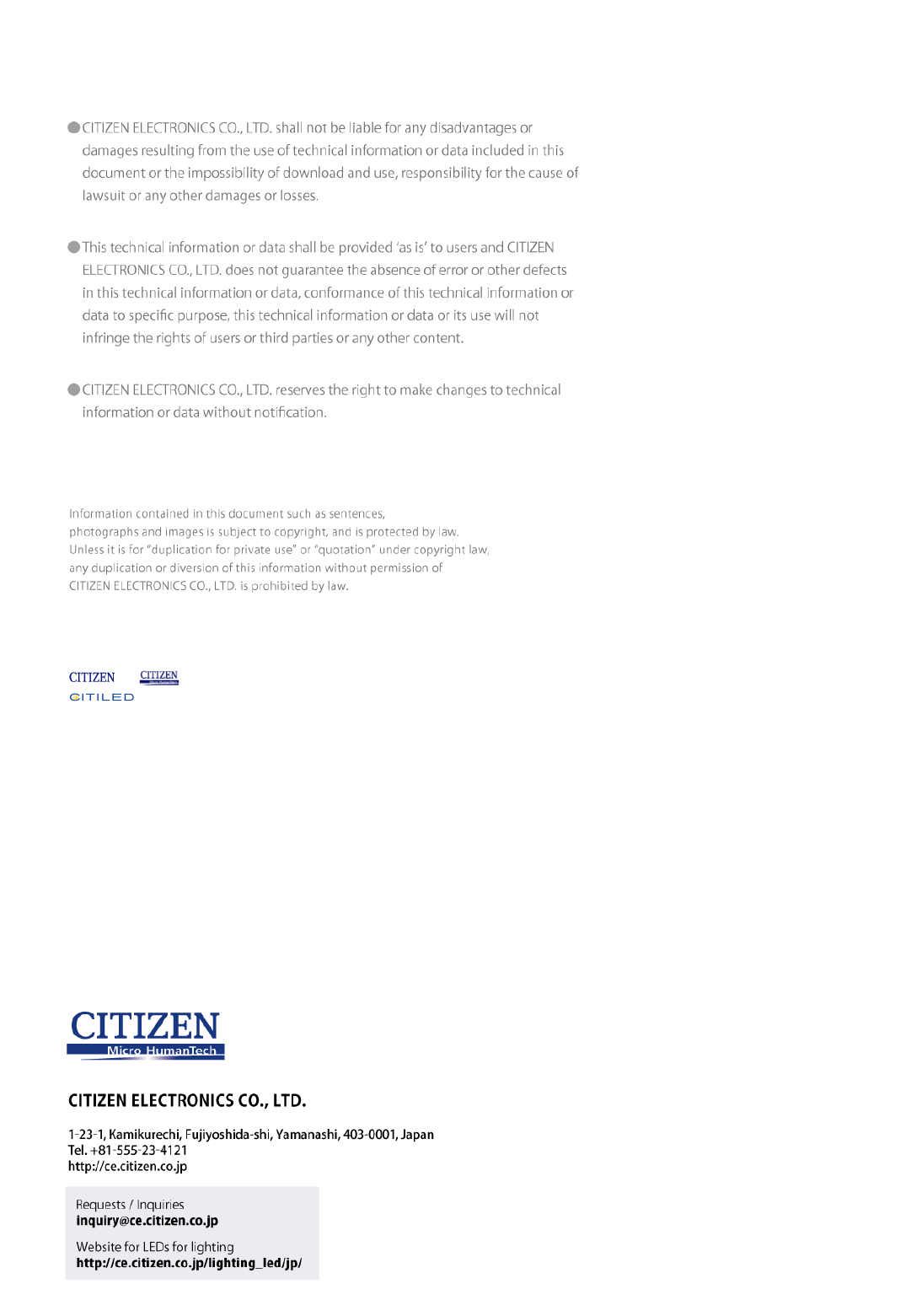 CITILED is a registered trademark of CITIZEN ELECTRONICS CO., LTD. Japan