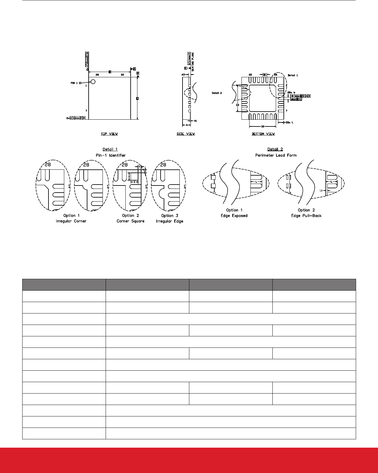 • Added Z and Y dimensions and updated Note 3 in Table 6.1 QFN28 Package Dimensions on page 33.