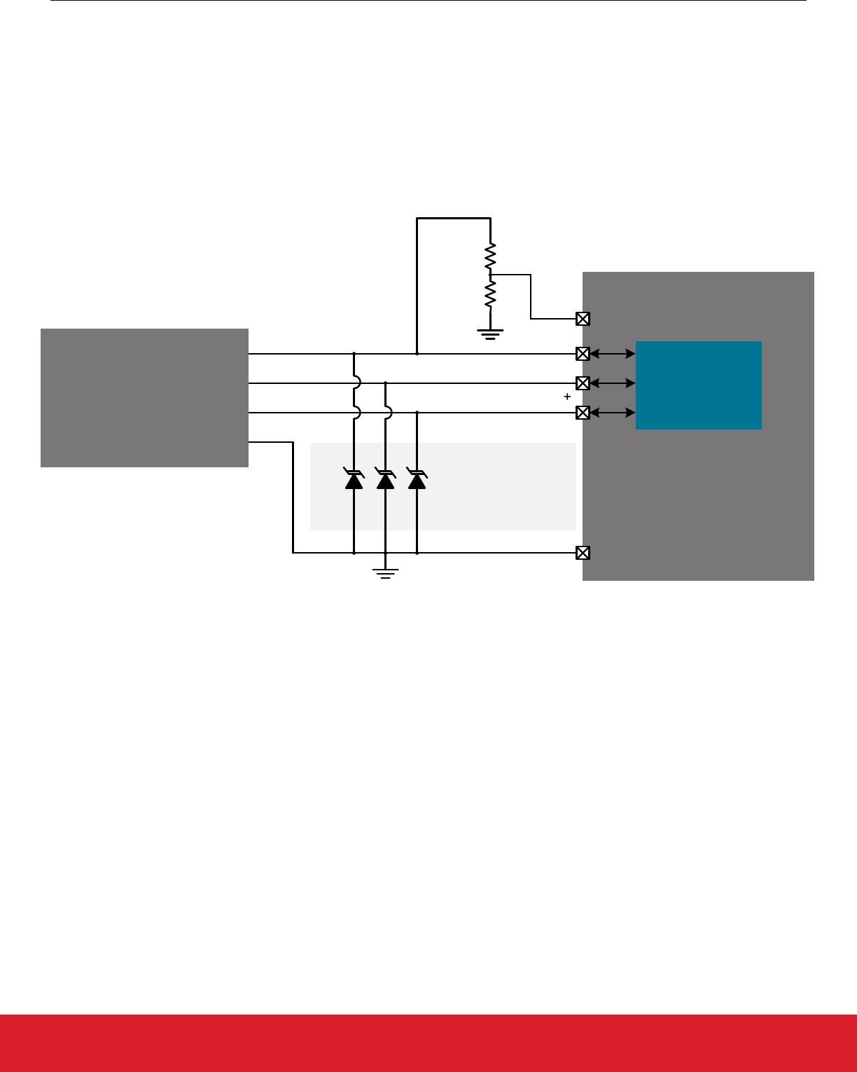 page 8, and Figure 2.6 Self-Powered Connection Diagram for USB Pins on page 9 to reflect new SP0503BAHTG protection device