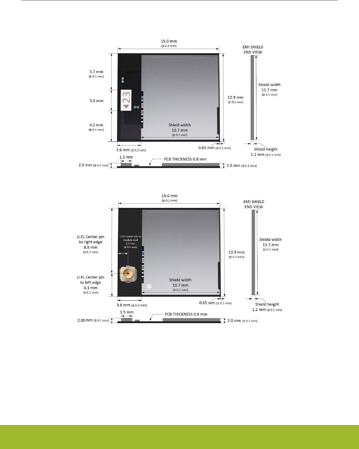 •Antenna: internal chip and U.FL variants