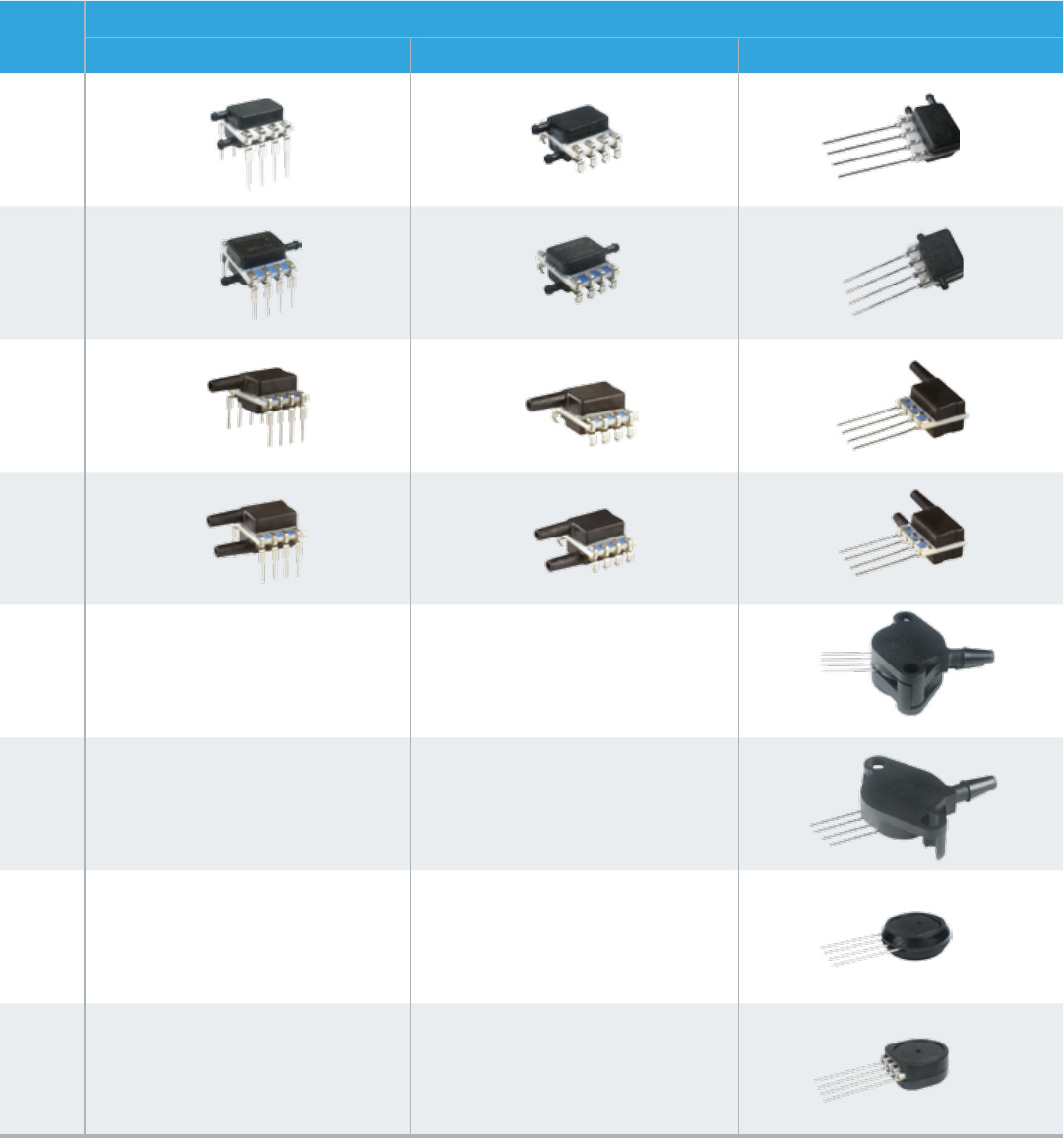 These sensors measure absolute, gage, or differential pressures. The absolute versions have an internal vacuum reference