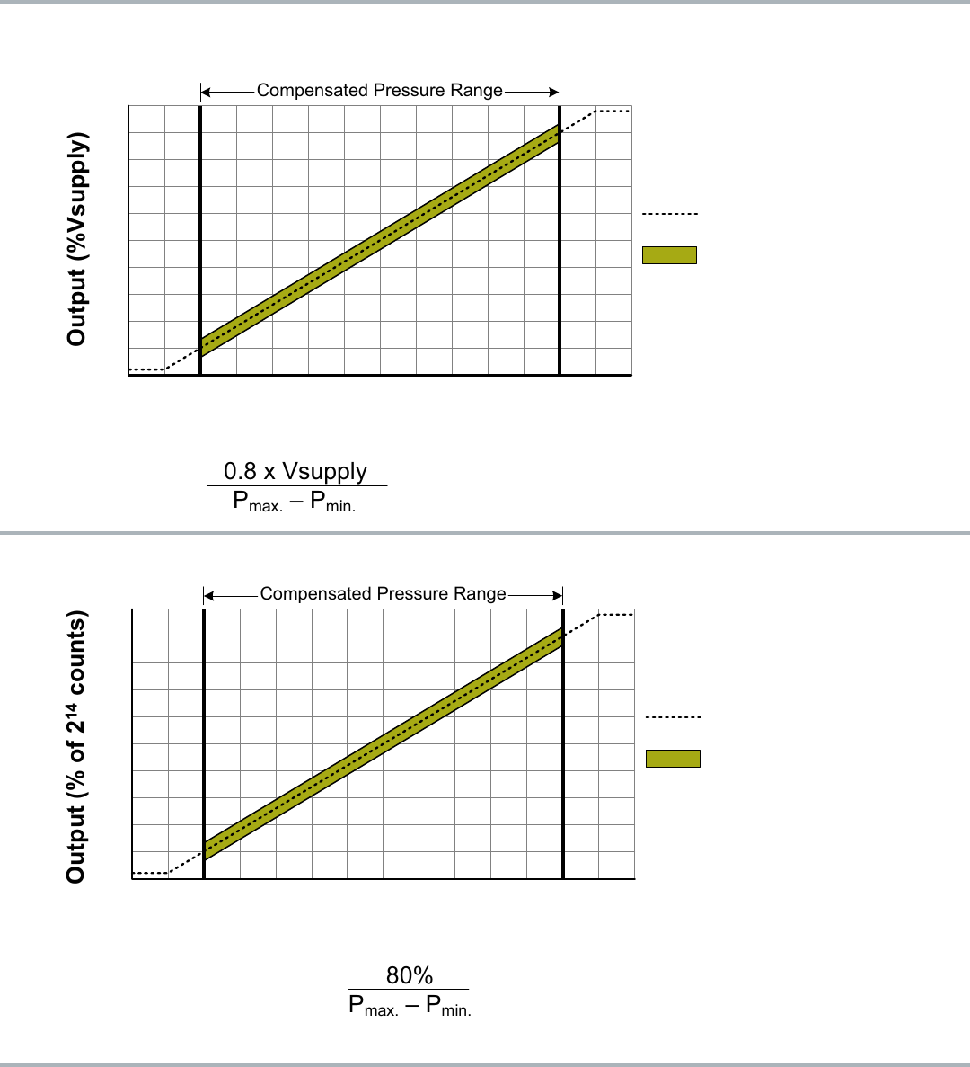 ratiometric analog or digital output for reading pressure over the specified full scale pressure span and temperature range.
