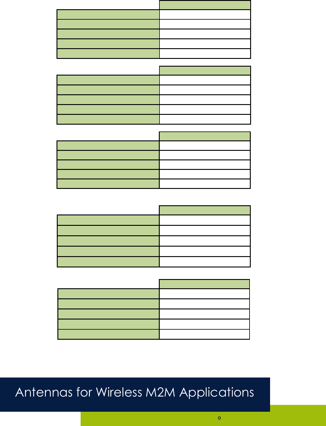 •Frequencies: 698-960MHz; 1710-2170MHz; 2300-2400MHz; 2500-2690MHz