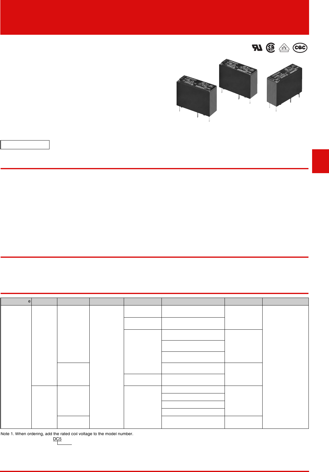 Note 1. When ordering, add the rated coil voltage to the model number.