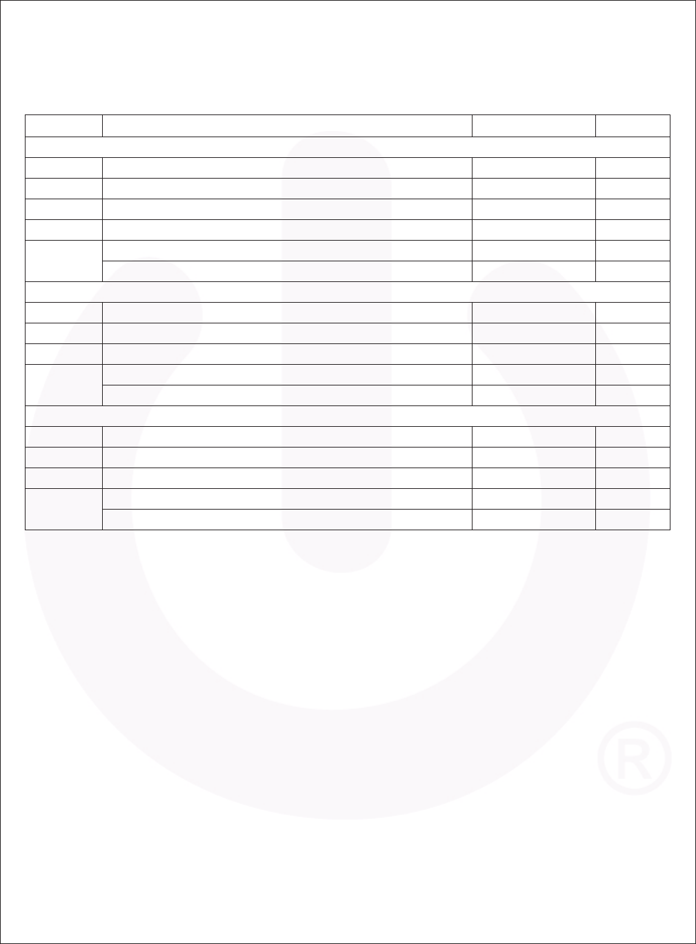 0110/1.89 Table 1, For Rated Mains Voltage