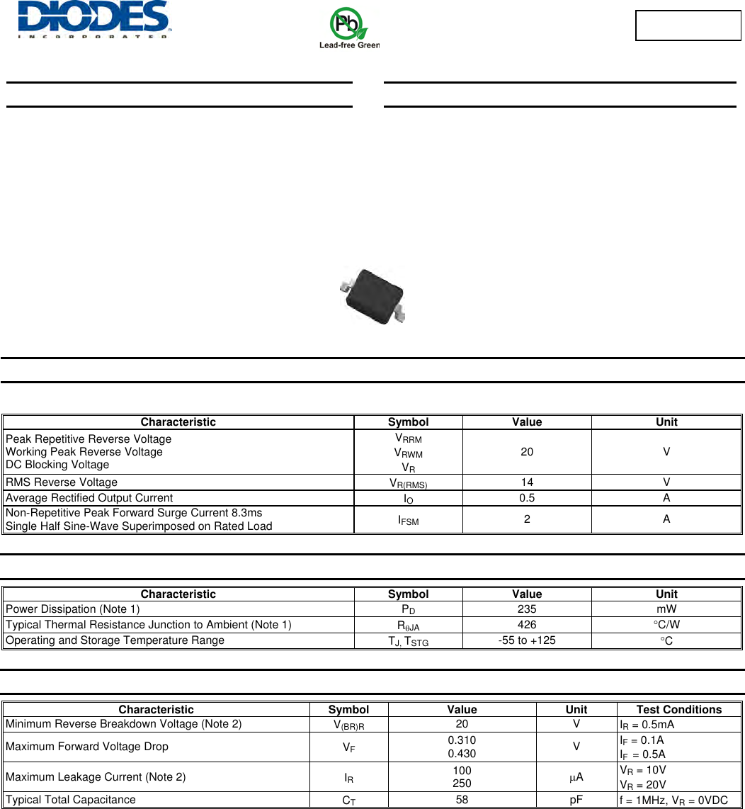 Minimum Reverse Breakdown Voltage (Note 2) V(BR)R 20 V IR = 0.5mA