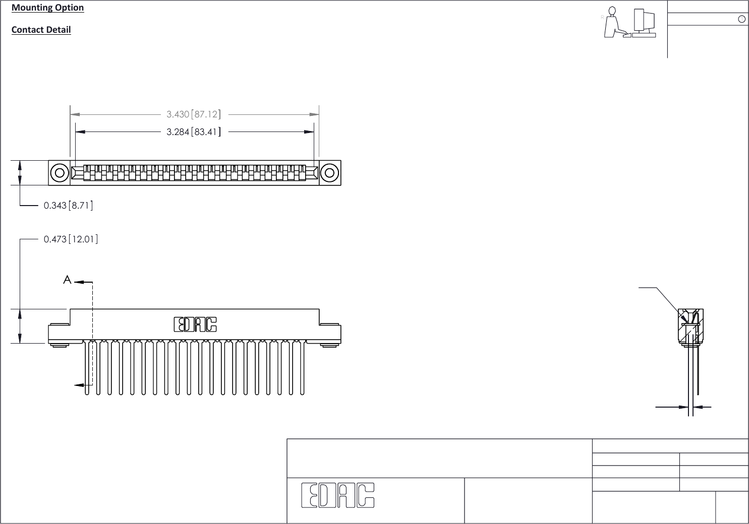 .156 [3.96] Contact Spacing x .200 [5.08] Row Spacing