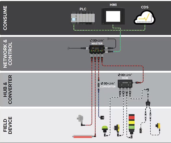 IO-Link is a short distance point to point digital communication standard used for Bi-directional communication with sensors and actuators. While IO-Link is not a field bus, the use of standard 24VDC for power and unshielded M-12 connector 3 conductor cabling (as an agreed upon interface connector) makes IO-link an attractive alternative to many short run communication standards.