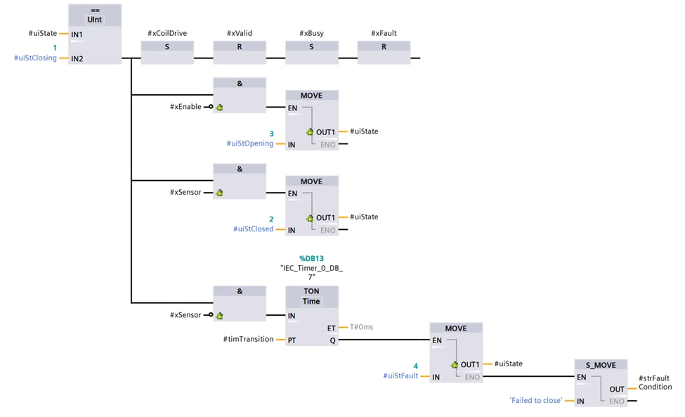 Each block used in the graphical diagram are used to represent different logical operations or coding functions. The left to right connections and flow lines between these blocks show the path data takes flowing between these functions. FBD is great for process control and PID loops as the function blocks and looping paths closely match.