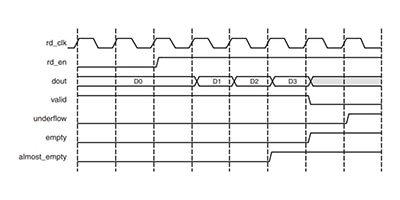 當查看 Xilinx 的 Kintex-7 FPGA 記憶體資源時,您會發現其 FIFO 產生器支援兩種讀取選項模式,分別是「標準讀取操作」和 「FWFT 讀取操作」。