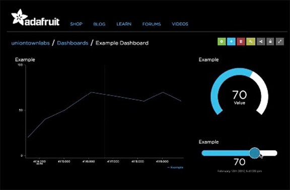 圖 3:開發人員可以顯示基於 Raspberry Pi 3 的工業自動化應用的資訊,並使用 Adafruit IO 儀表板提供控制。(圖片來源:Adafruit)