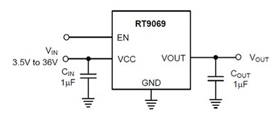 圖 5:Richtek 的 RT9069 系列可在嚴格限制的電池供電式應用中發揮最大續航力,且靜態電流僅有 2 µA,被引導至停用狀態時,靜態電流則為零。(圖片來源:Richtek Technology Corp.)