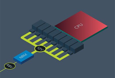 從 48 V 有效降到 12 V,資料中心即可維持傳統的基礎架構。(圖片來源:Vicor Corporation)