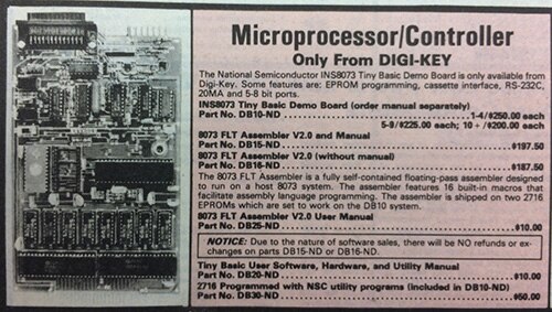 As technology and the embedded world evolved, things kept getting better. I was hired by DigiKey in 1984 to support a popular item called the DB10 board, which was a tiny basic computer board from National Semiconductor that used a CRT (cathode ray tube or terminal which resembled a small TV) and keyboard to write basic programming language where you could easily get to the peripheral adapter ICs and output to a transistor driver for driving stepper motors, lighting LEDs, or sending a message to a LCD dot matrix display.