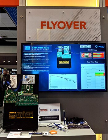 在 DesignCon 大會上,Samtec 展示了使用 112 Gbps 的 Flyover 纜線,從 Credo Pelican II SERDES ASIC 連接到前面板連接器 (圖 2)。