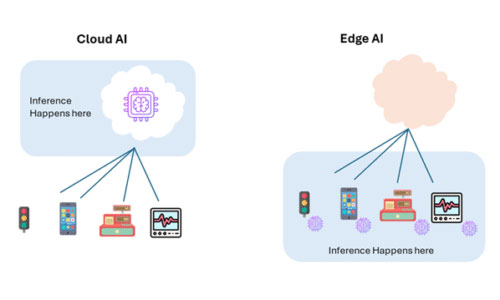 In modern architectures, AI processing is split between the cloud and the edge (Figure 3). Cloud AI provides massive scalability but often faces latency and privacy limitations. Edge AI, in contrast, performs real-time processing locally enabling instant decision-making, enhanced security, and continuous operation even without network connectivity.