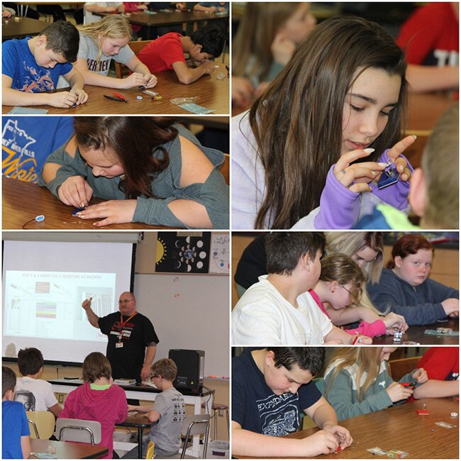 DigiKey 技術人員在自然課課堂時間造訪該中學。每堂講習中,學生聆聽一些最新、最吸引人的先進技術,並學習試驗電路板架構電路,同時採用 Adafruit 的快速振動感測器開關建立一個振動感測器專案。