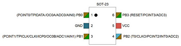 如果您正在尋找一款非常便宜的微控制器,那麼非 Microchip 的 ATTINY10-TSHR 莫屬 (圖 2)。Microchip AVR 系列的這款 6 針腳 8 位元微控制器具有諸多優點。此元件具有 54 個指令,大部分都可在一個時脈週期內執行完畢,且此元件的運作頻率為 12 MHz。此 AVR 型號具有一個 1 Kb 快閃指令記憶體和 32 位元組 RAM。很難相信竟然可在這個 6 針腳元件中放入如此多 I/O 支援功能,但 ATTINY10-TSHR 微控制器可在四個 I/O 針腳上對以下周邊補充裝置進行多工處理:
